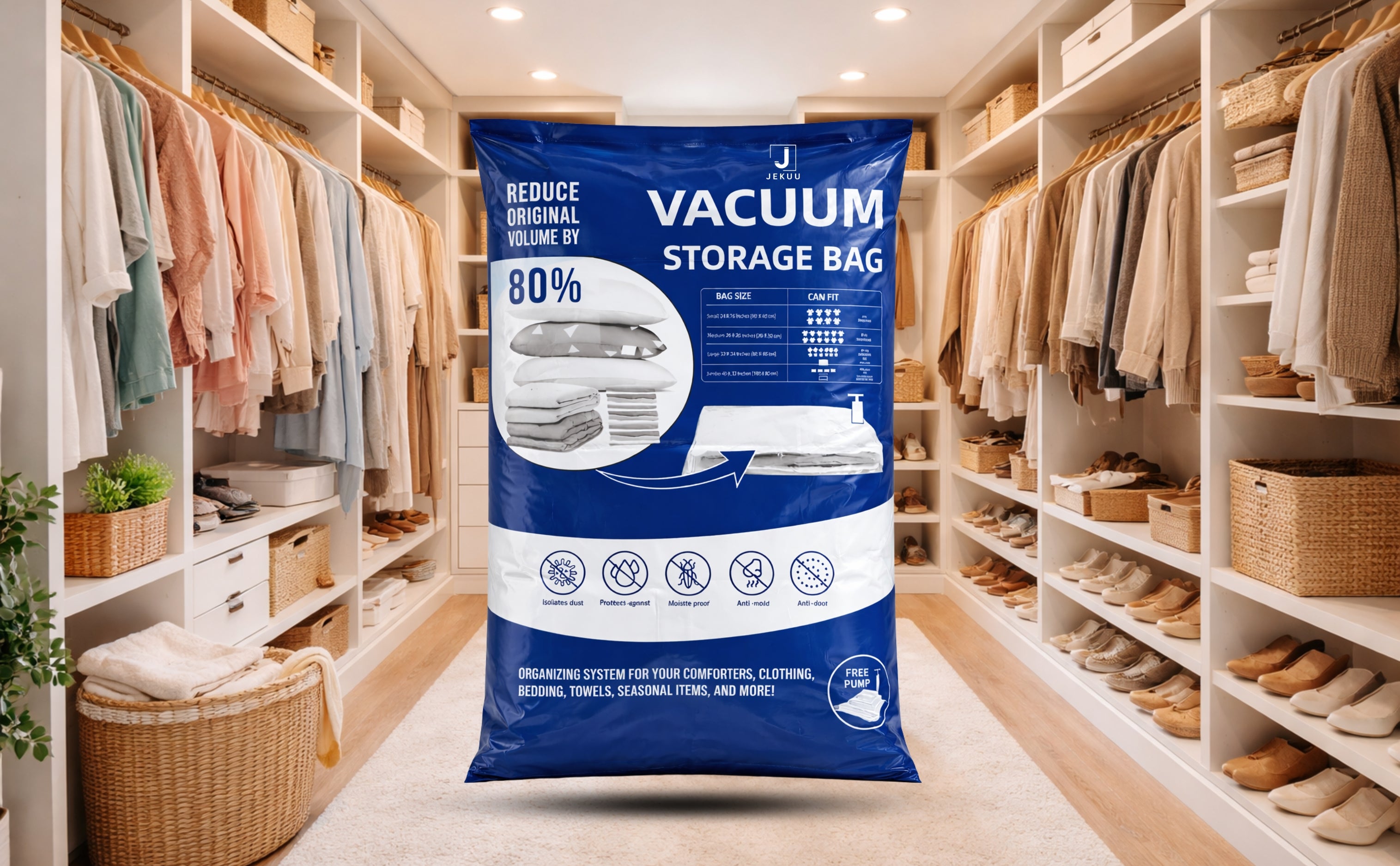 Compress bulky clothes and bedding for cleaner, organized storage.