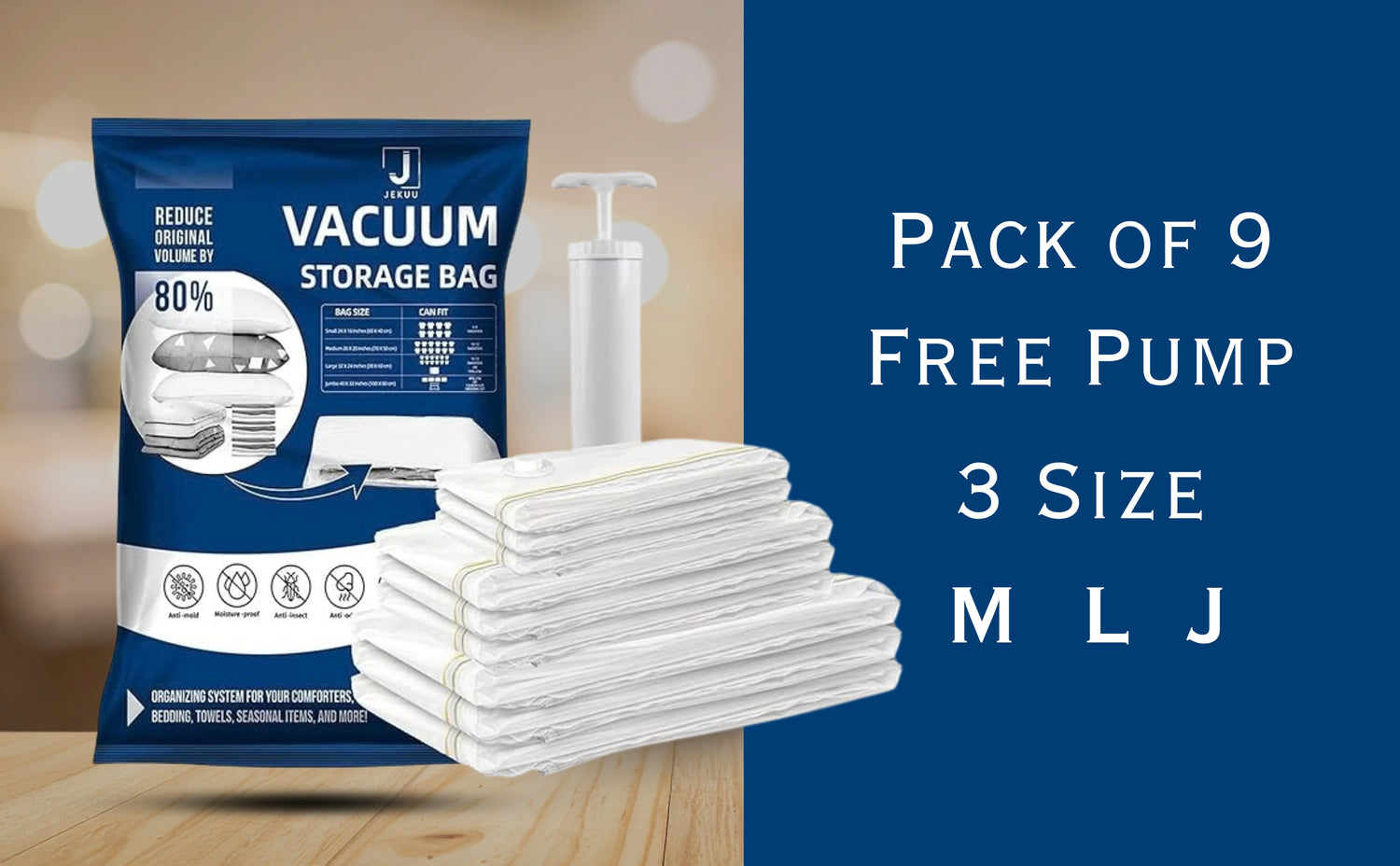 Space Saver Vacuum Bags – Pack of 9 with Free Hand Pump